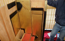 金物を傷めないように釘を抜いていきます。●蒔絵板等もはずし、金物破損部等を確認します。