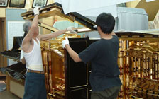 阿弥陀堂ではお仏壇の洗濯も承ります。大切なお仏壇をお預かりし、専門の職人が慎重に洗濯を施し、下記の工程で購入されたときと同じ状態に再現していきます。