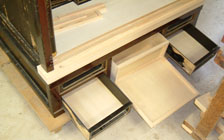 軽い反り等に圧力を掛け、予算に応じて修復内容の変更をします。●雨戸・障子丈合わせ+破損部修理、面取り(銀杏面)修復、引き出し修復します。