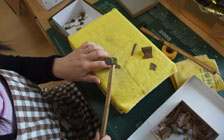 箔押し後組み立て作業に移ります。●金物打ち、再度補強組み立て